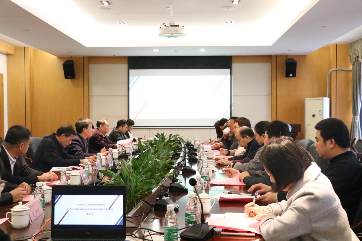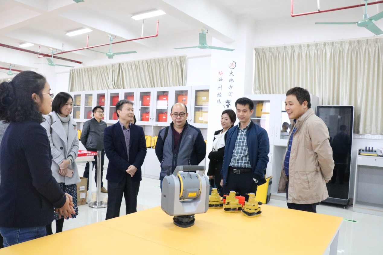 广东省核工业地质局测绘院一行首先到测绘地理信息中心、校企特色实训基地、虚拟现实中心参观,广东省核工业地质局测绘院一行肯定了我院的实训室建设成果。