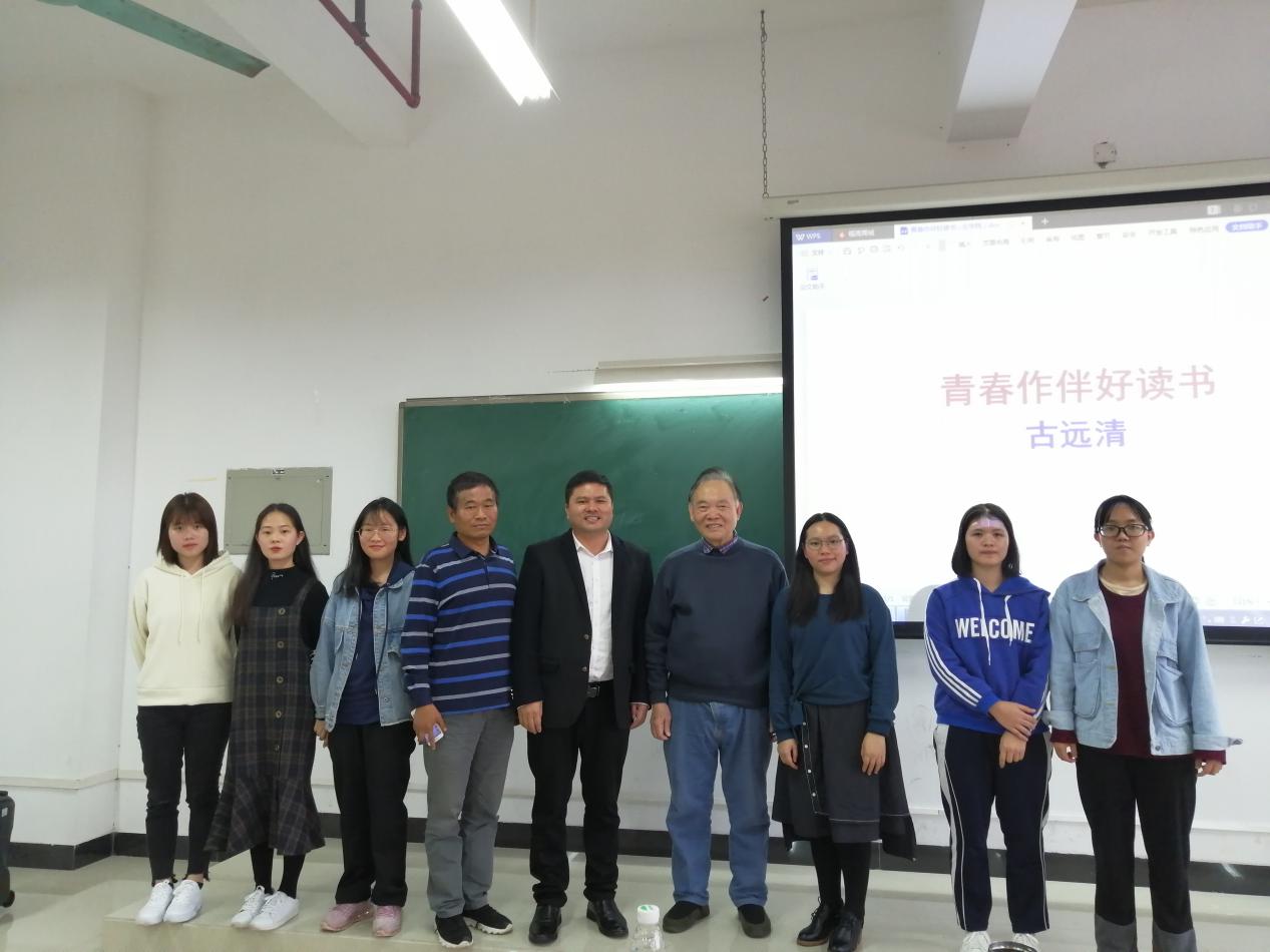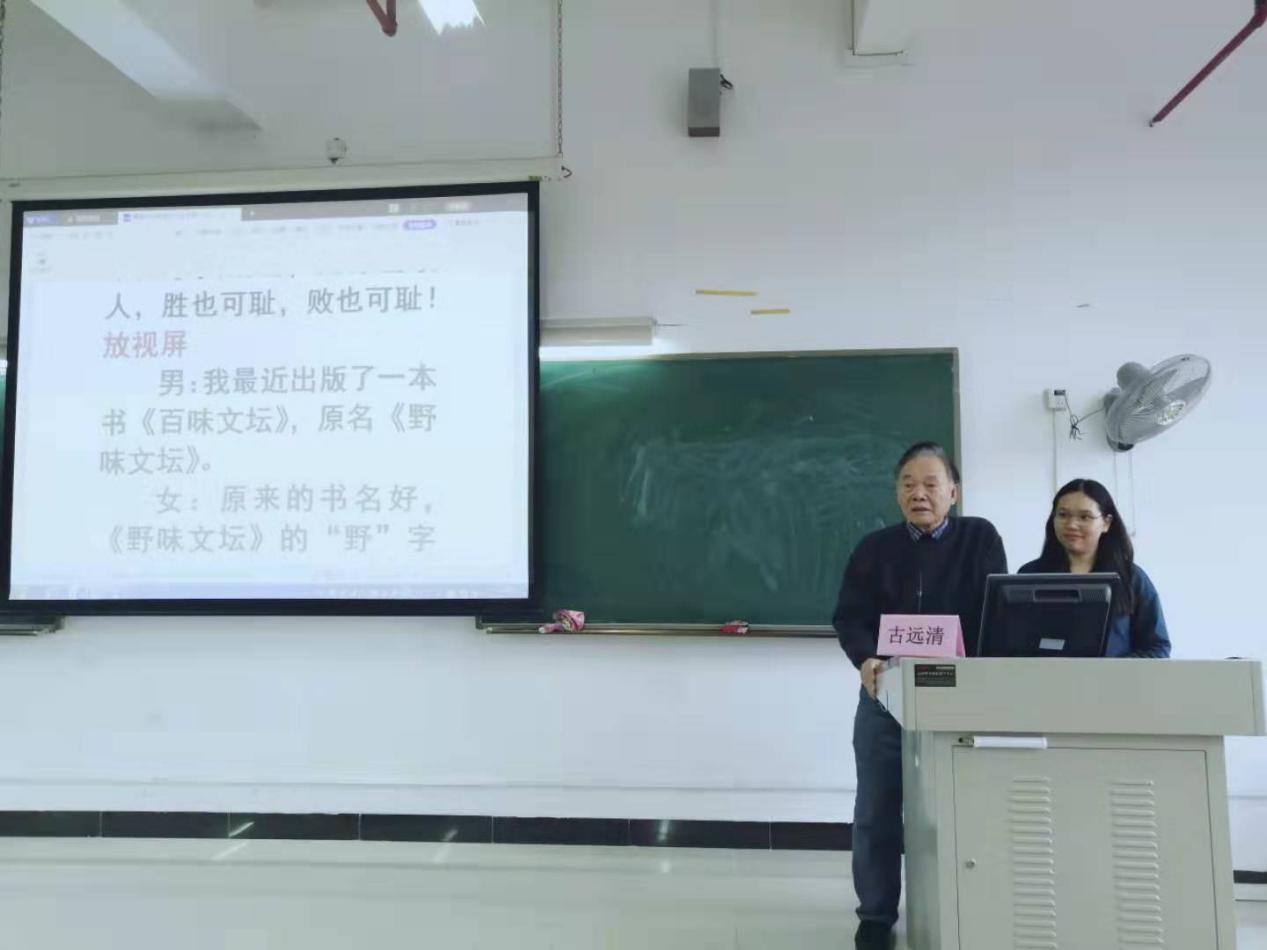 314日,应用外语学院研习所及之江社系列活动在明德楼2-102举行。中南财经政法大学教授、台港澳暨海外华文文学研究所所长、中国新文学学会副会长、国际炎黄文化研究会副主席古远清应邀为外语学子进行一场主题为“青春作伴好读书”的读书分享交流会。学院党总支书记李德富,副院长杨国民出席本次活动。