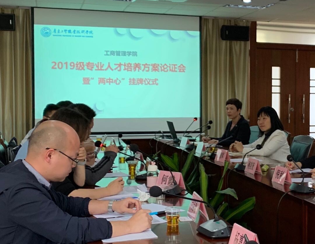 为进一步提升人才培养质量,3月12日下午,工商管理学院在天河校区中心会议室举行2019级专业人才培养方案论证会议暨“两中心”挂牌仪式。作为专业建设委员会成员的工商管理学院党总支书记周清莲、院长邹德军、副院长倪春丽、会计专业带头人冯旭东、文秘专业带头人梁巧丽、商务管理教研室主任何美贤、工商企业管理专业带头人袁年英、工商企业管理教研室主任邹建军、物流专业带头人杨嘉伟,物流教研室主任倪利,校外专家代表广州番禺职业技术学院督导办主任何霞、广东连锁经营协会副秘书长张淦盛、广东苏宁易购销售有限公司总经理助理杨海琴和人力资源经理宋晖珲、广东省物资公司财务主管毛志勇、百果园广州区副总经理巫伟银和高级行政主管梁志远出席了此次论证会。会议由倪春丽副院长主持。