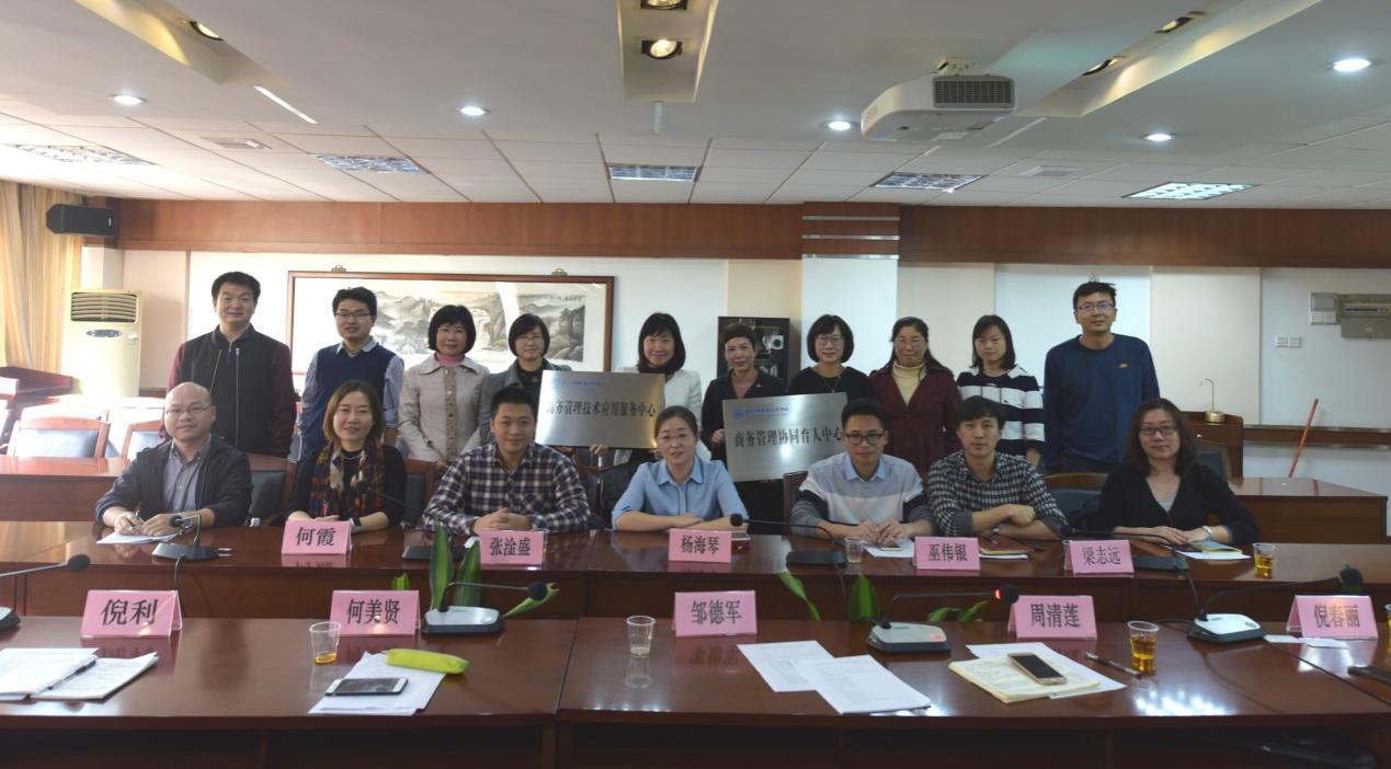 在人才培养方案论证之后,倪春丽介绍了我院商务管理协同育人中心和商务管理技术应用服务中心的定位、功能和已经运行的项目,代表们进行了挂牌仪式。