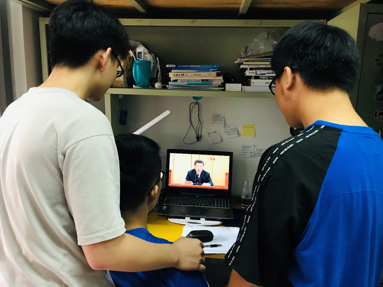 学生在宿舍观看直播
