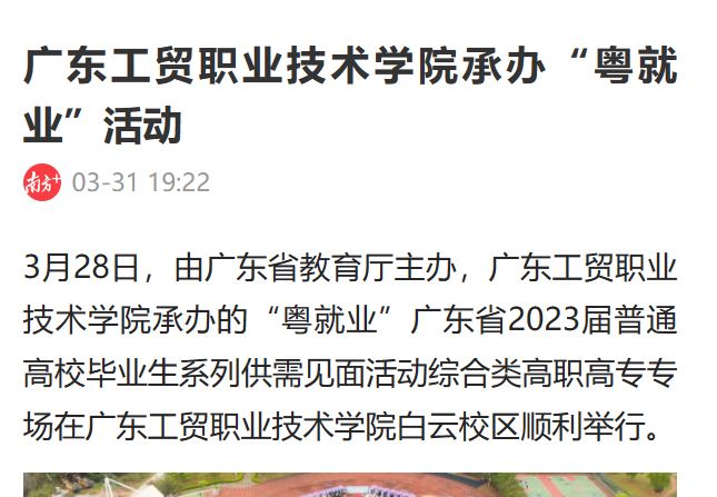 3月28日,由广东省教育厅主办,太阳集团城官网1407承办的“粤就业”广东省2023届普通高校毕业生系列供需见面活动综合类高职高专专场在太阳集团城官网1407白云校区顺利举行。招聘会组织“专精特新”企业、优质民企、中小微企业等线上线下参会835家,招聘岗位数近40000个,近6000名毕业生参加招聘会。招聘岗位覆盖制造、金融、管理、信息技术、教育等多个行业,精准满足学生需求。招聘会现场人头攒动,用人单位与求职者进行点对点、面对面交流,沟通岗位需求、薪酬待遇、发展空间等。