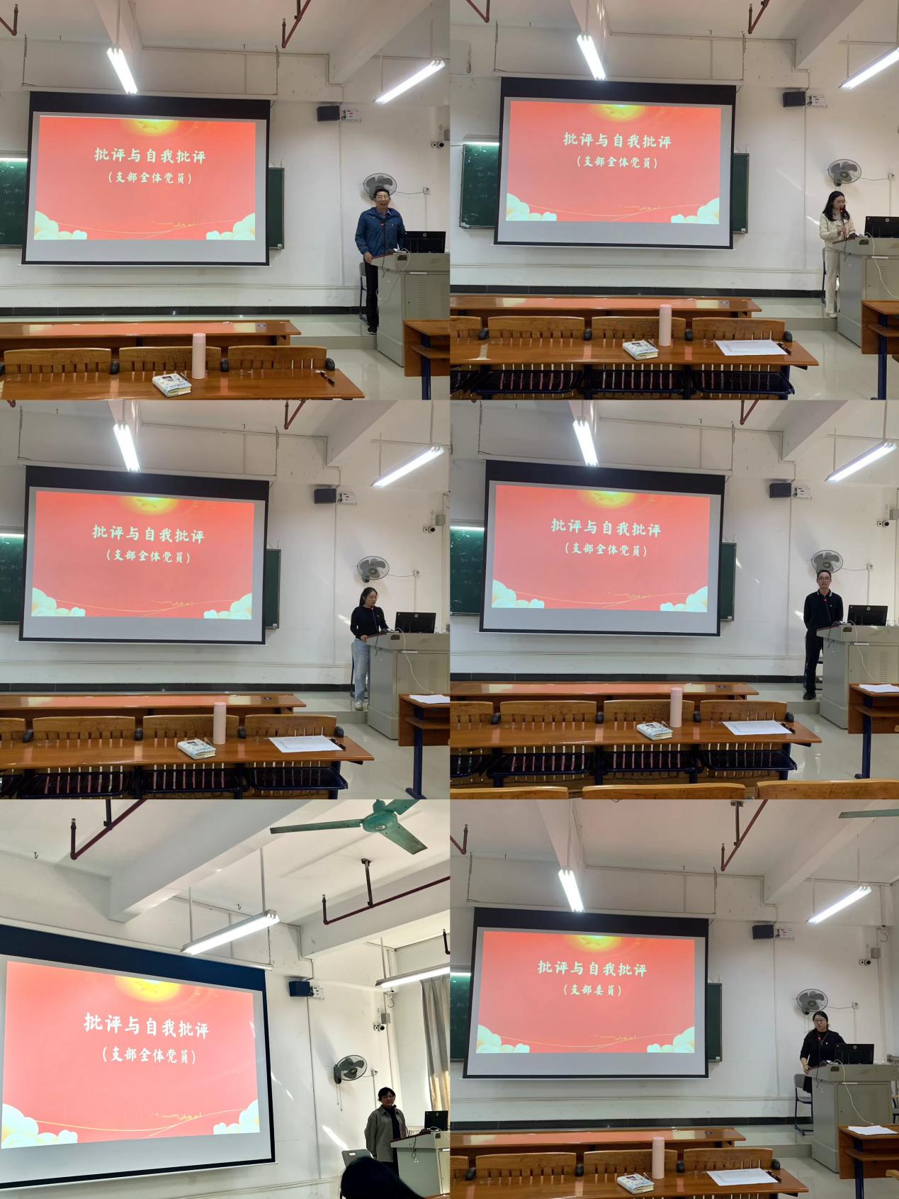支部的党员同志查问题、找根源,态度诚恳地开展批评与自我批评。问题较多的是集中在平时理论学习上的时间不够、深度不足,理论联系实际的能力有待加强;在科研和教学上还仍需要不畏艰难,不断突破,自我提升;在工作中要更深入联系群众,服务好群众。支部党员实事求是,态度端正,敢于评价自己和支部同志的优缺点,相互提醒、查问题找不足。会议按照程序和要求,通过无记名方式对每一位党员开展了民主测评。