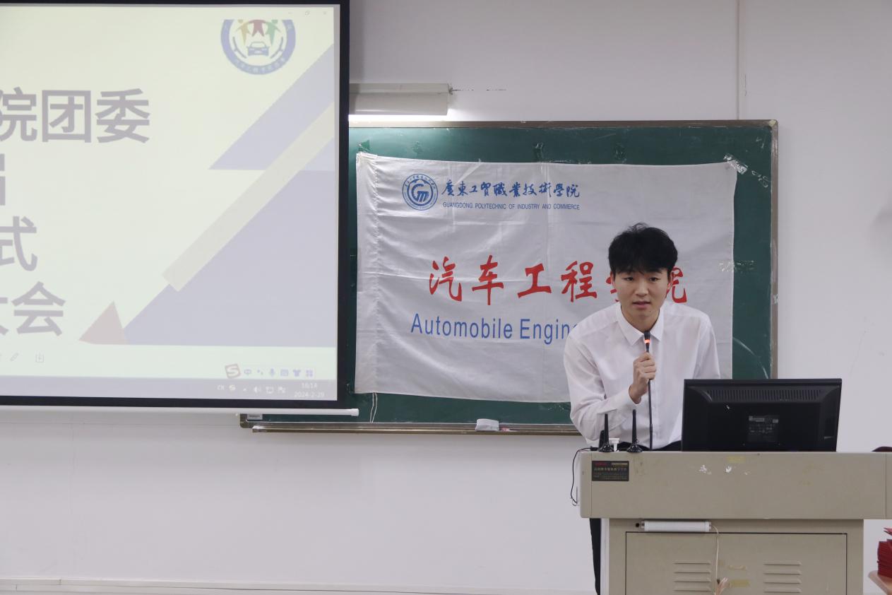 随后,由学生代表黄柏杰发言,他表示感谢学院团委学生会给予自己这个机会加入到学生会这个大家庭里。在这里我结识了许多志同道合的朋友,也收获了许多宝贵的经验,同时也希望在未来的日子里,学生会能够团结一致,齐心协力,全心全意服务同学,做出成绩,追求更好,共同创造美好的未来。