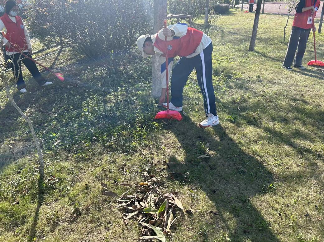 下午两点半,志愿者们在子衿广场集合完毕后,携带清洁工具前往活动地点。负责人将志愿者们分成三个小队,分别打扫明德楼一区、二区和田径场三大区域。