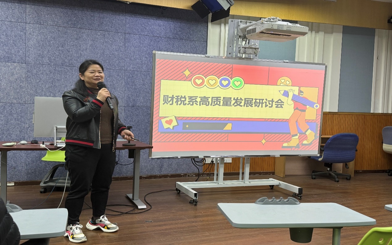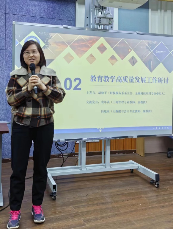 接着,财税服务系主任胡建平就财税服务系高质量发展提出了具体的措施和愿景。工商管理专业副教授袁年英以及大数据会计专业副教授冯旭东副教授就各自专业领域的高质量发展发表了观点与看法。