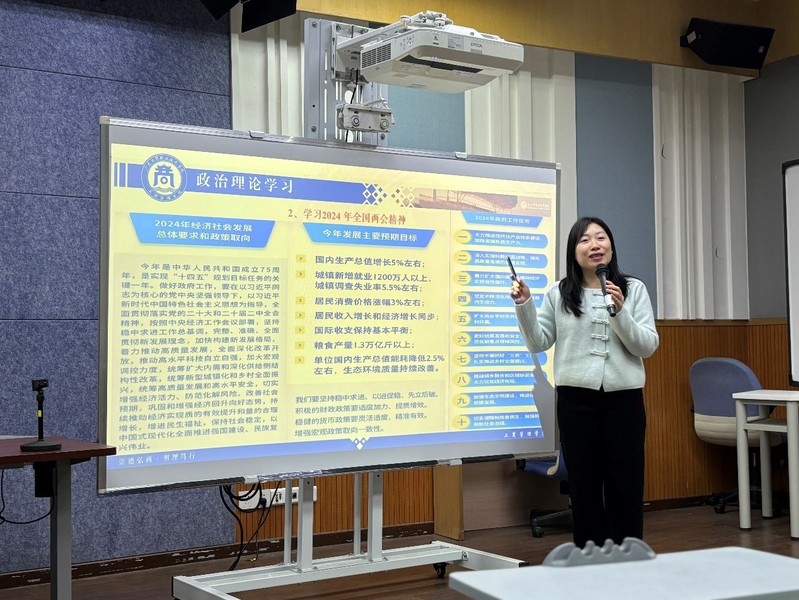 工商管理学院党总支书记周清莲带领大家开展政治理论学习