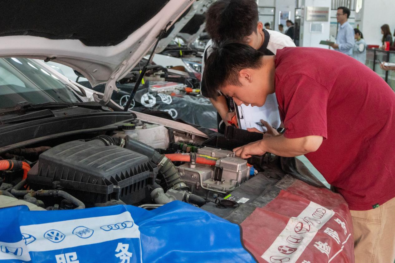 决赛现场气氛热烈非凡,首先,参赛选手依次进行抽签,根据结果确定故障检修的车辆。比赛开始后,现场气氛瞬间被点燃,选手们如同离弦之箭冲向各自负责的汽车,他们配合默契、沉着应赛、规范操作,充分展现了良好的精神风貌和精湛的专业技术水平。