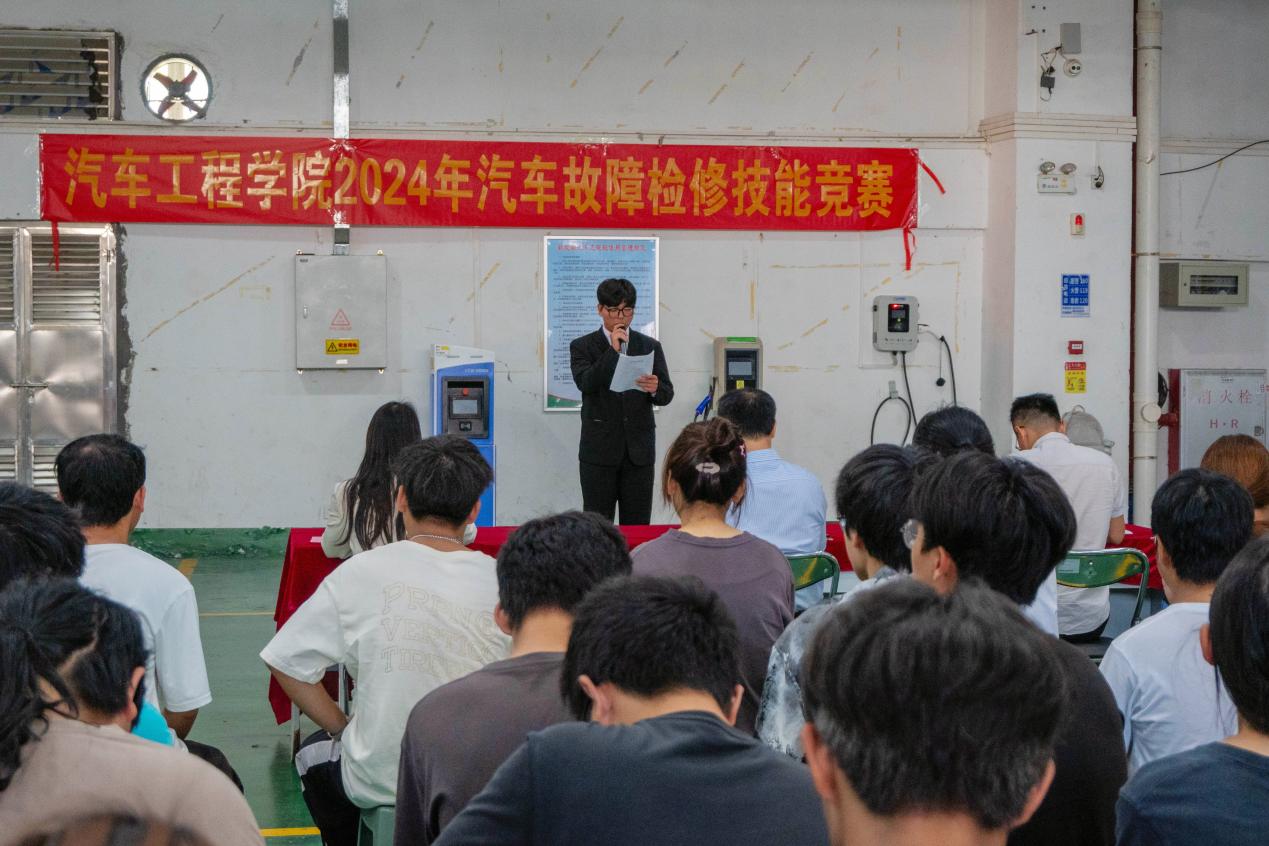 为紧跟国家新能源汽车发展战略,服务汽车产业领域人才培养的需求,培养更多高素质技术技能人才,提高学生学习技能的兴趣,锻炼动手能力和创造能力,2024年11月13日,由汽车工程学院党总支主办,汽车工程学院新能源汽车系承办,汽车工程学院团总支、汽车工程学院学生会、太阳集团城官网1407汽车协会协办的2024年汽车故障检修技能竞赛决赛在行知楼101教室举行。本次比赛由王锋主任、黄美红老师、钟玉灵老师担任评委,比赛由毛炳哲主持。