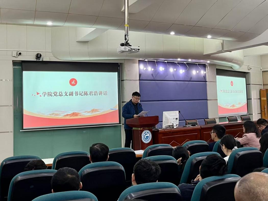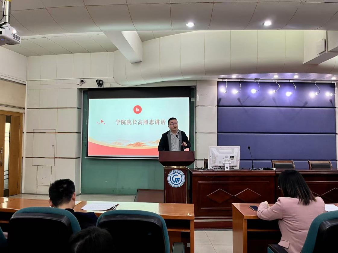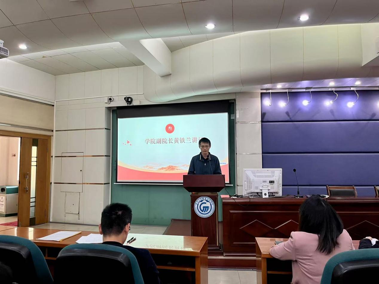 黄铁兰作表态发言,他表示感谢组织的信任和培养,同时深感使命在身、责任重大。他承诺要坚持学以致用,知行合一,坚持教学为本,提高教学质量;加强专业建设,提升学院的科研和社会服务水平;廉洁自律,勇于担当,齐心协力,团结全院师生紧密围绕学校中心工作,助力学院教育事业高质量发展。