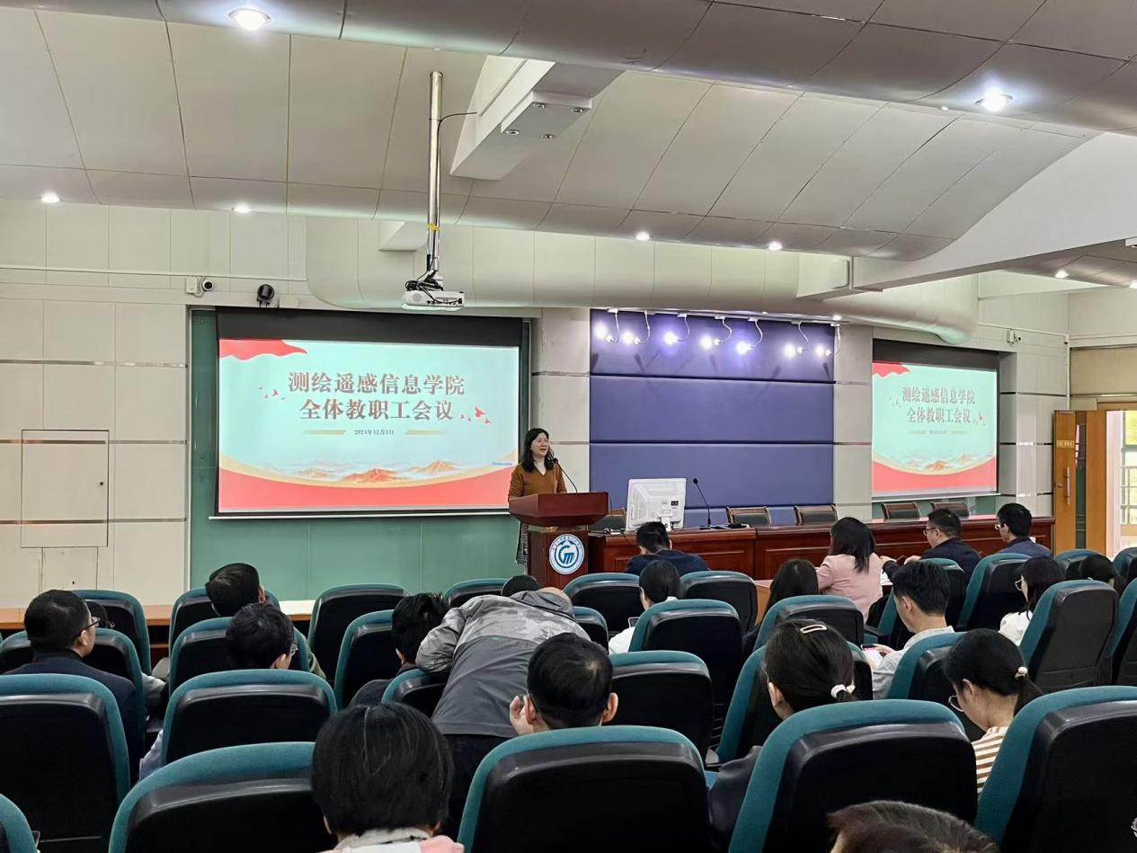 12月3日下午,测绘遥感信息学院在天河校区西区5楼报告厅召开全体教职工会议暨新提拔干部任职宣布会。会议由测绘学院党总支书记李元主持,学院全体教职工参加。