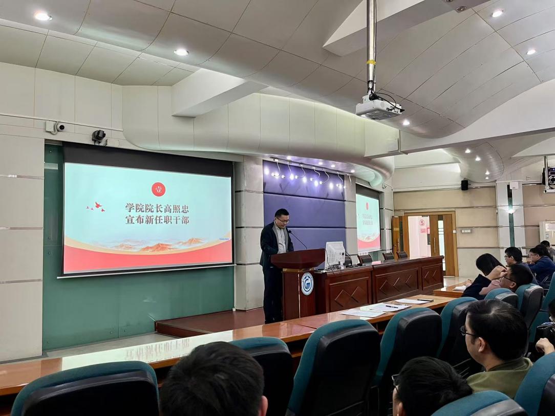 会上,测绘学院院长高照忠宣读了陈君浩任测绘遥感信息学院党总支副书记,黄铁兰、刘丽任测绘遥感信息学院院长的任职决定。