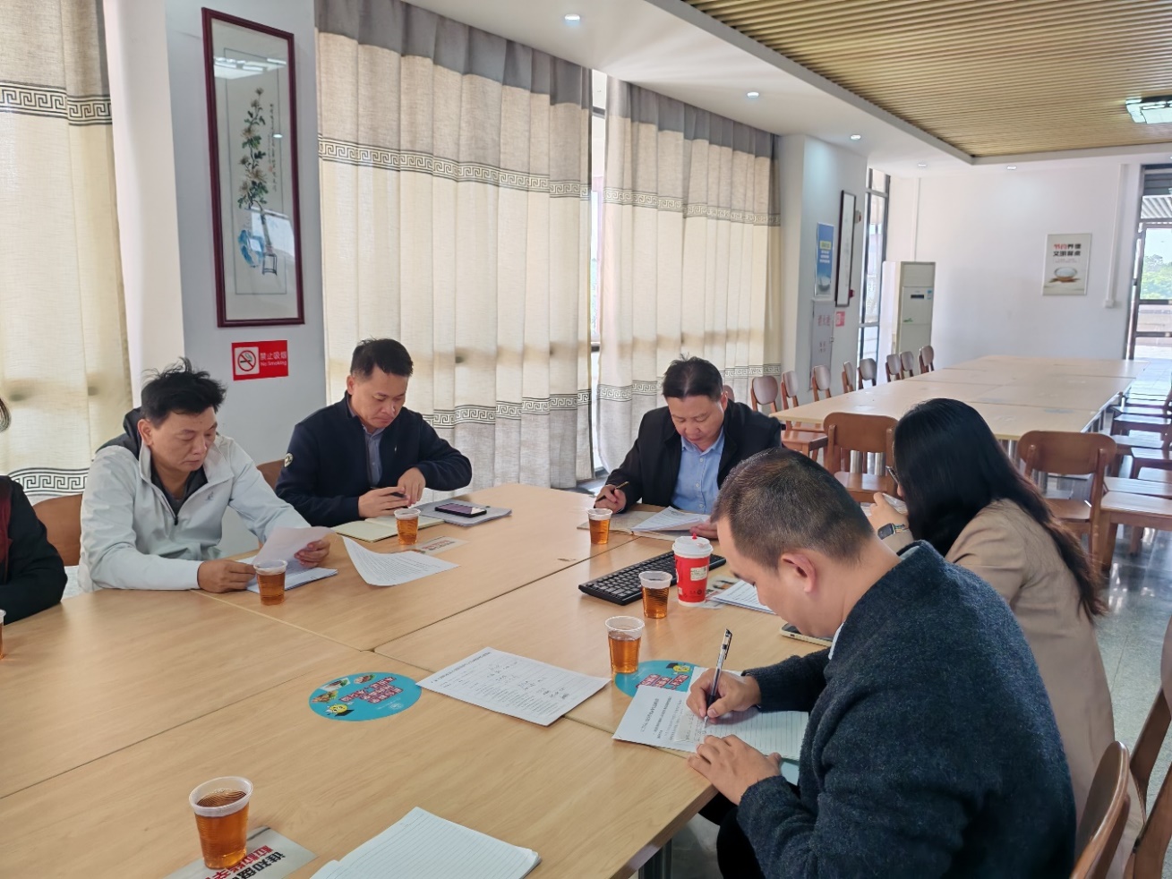 会上,参会人员共同学习了《广东省教育厅办公室转发教育部办公厅关于纵深推进专项整治迅速开展校园餐管理监督关键环节自查工作的通知》、《关于强化集中用餐食堂承包经营食品安全管理工作的通知》、《教育部办公厅关于印发<中小学校园食品安全和膳食经费管理共工作指引>的通知》(教体艺厅函〔2024〕39号)等文件精神,传达了“关于高校食堂食品安全监督检查情况通报及食品安全知识宣贯会”会议精神,学习了《中小学校园食品安全和膳食经费管理共工作指引》和《食品安全风险管控清单(集中用餐单位食堂)》有关内容,提高认识总结经验,加强相关工作。
