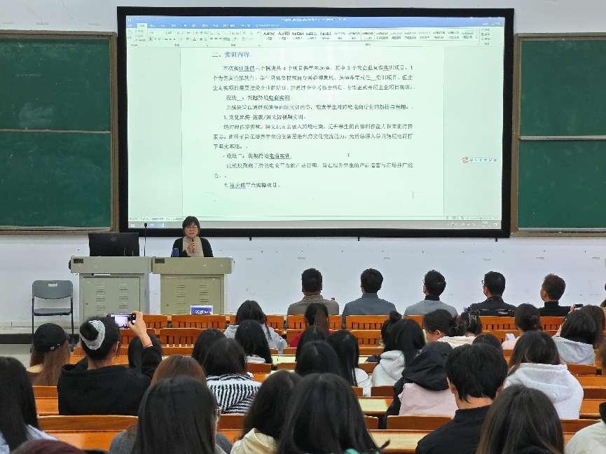 周宝魁则详细介绍了广州出口宝电子商务有限公司,并分别展示了部分项目内容,以及表达了对于当下国际市场的见解。让学生们眼前一亮,纷纷表现出了极大的兴趣。