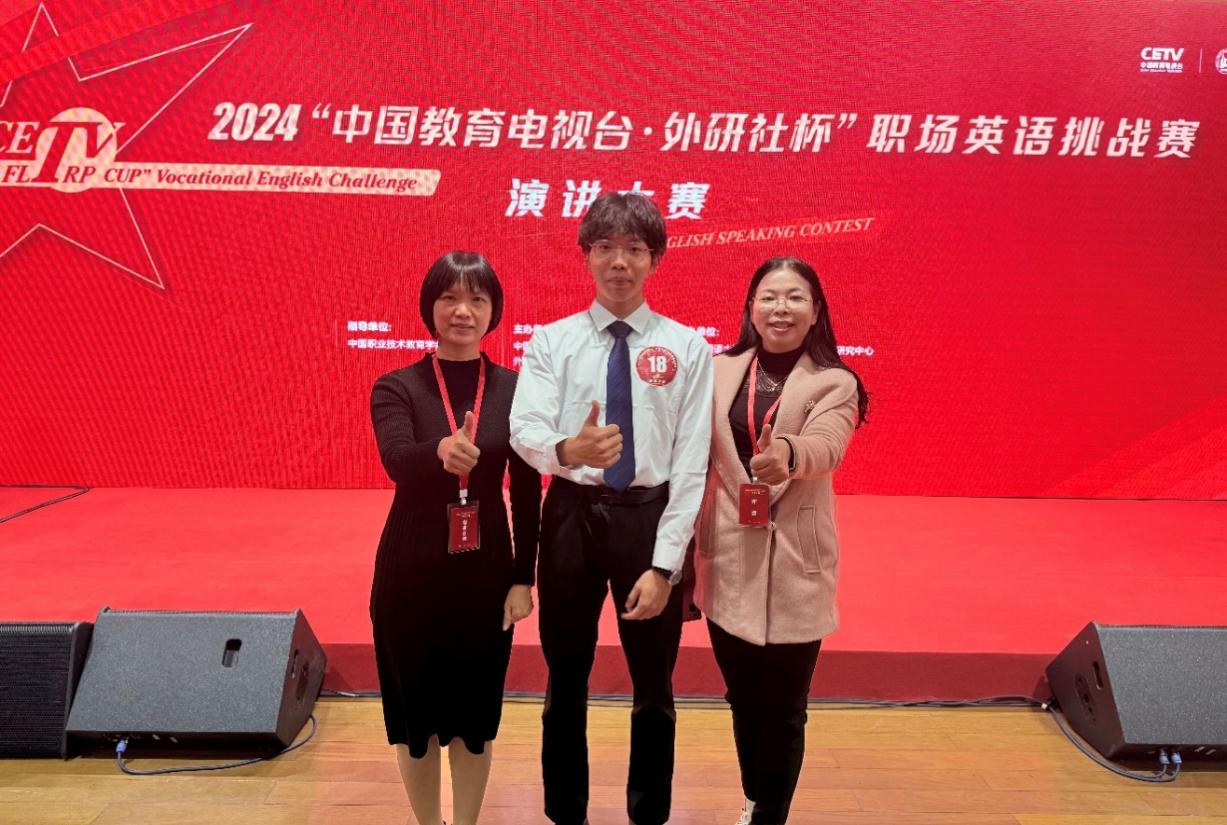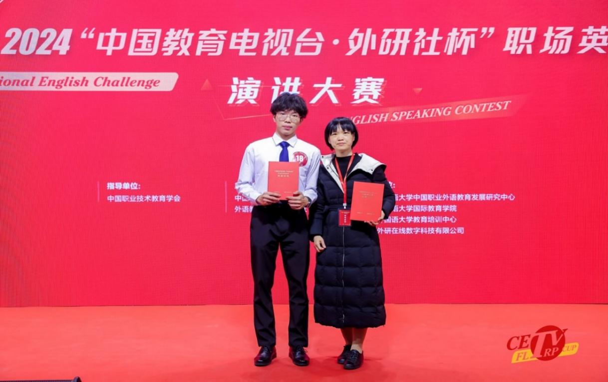 2024年“中国教育电视台·外研社杯”职场英语挑战赛演讲大赛全国决赛于12月12日至17日举办,经过四个阶段的激烈角逐,我校应用外语学院学生郭勇涵(指导老师:陈锦英)斩获国赛“特等奖”,展现了我校学生良好的精神风貌与过硬的演讲技能,也体现了我校英语老师较高的指导水平。