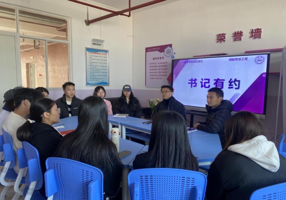 为深入学习贯彻党的二十届三中全会精神,落实立德树人根本任务,扎实推进学院“闻韶工程”及“一站式”学生社区建设,倾听学生诉求和建议,更好服务学生,2024年12月19日下午,经济贸易学院在宿舍楼16栋8楼辅导员工作室开展“书记有约”座谈会。经贸学院党总支书记李繁、党总支副书记龚云、辅导员莫雯嘉、部分学生党员和发展对象参加本次座谈会。