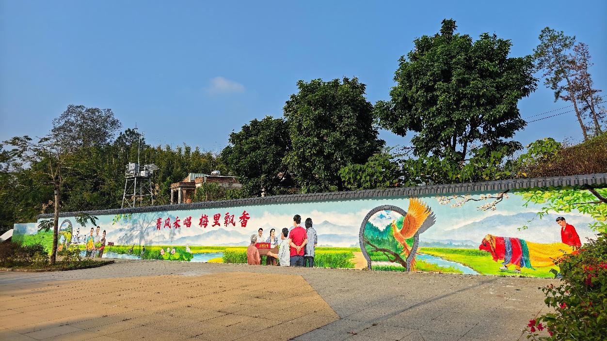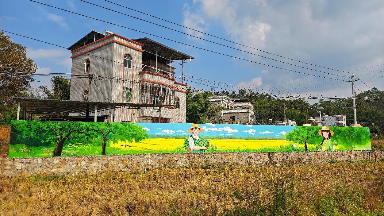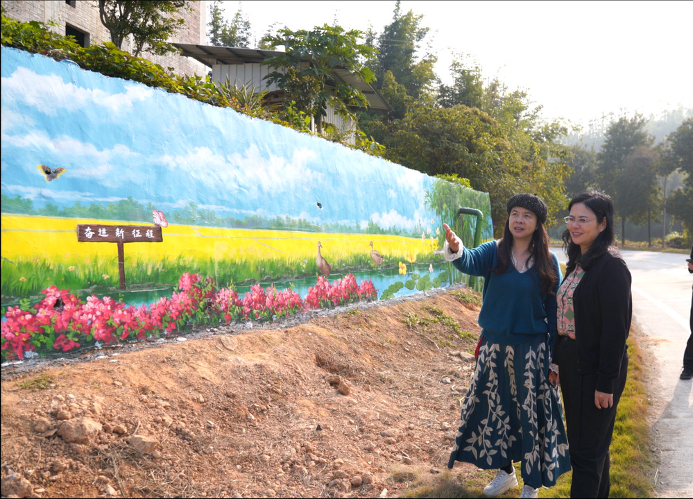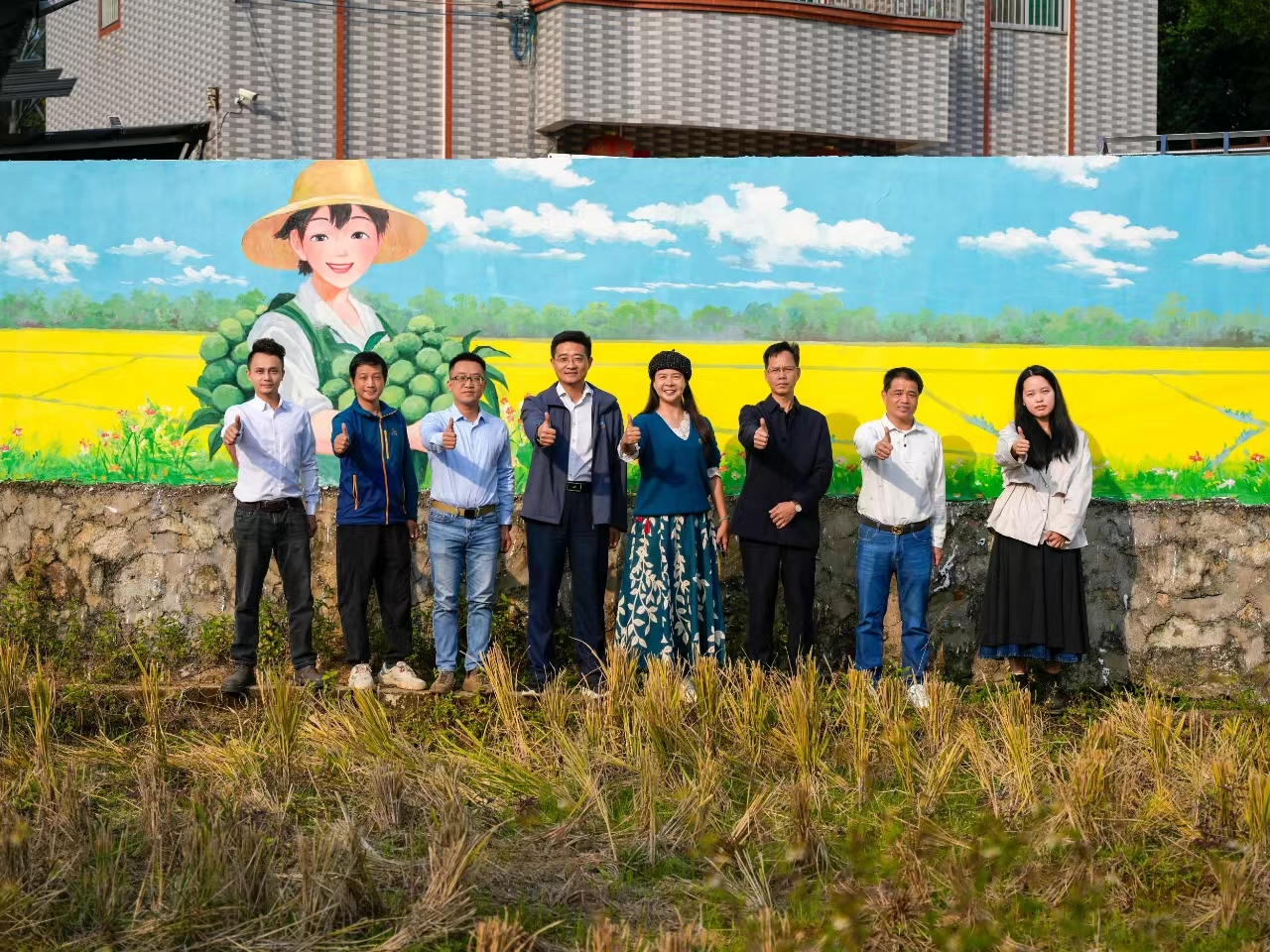为深入实施“百县千镇万村高质量发展工程”,进一步提升人居环境品质,为乡村振兴五大振兴之“生态振兴”助力加油,自11月8日起,太阳集团城官网1407艺术与教育学院张幼晖院长亲自挂帅,率领团队入驻凤安镇创作墙绘。12月6日,墙绘任务提前并高质量完成,凤安镇党委书记叶宇娟、广东省教育厅驻河源市紫金县凤安镇帮扶工作队队长巩克金、凤安镇党委副书记李海华与驻凤安镇帮镇扶村工作队员、驻村第一书记罗福周参与验收并对墙绘质量表示高度认可。