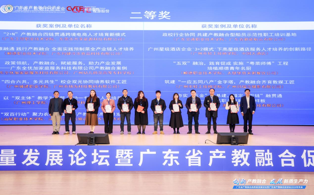 12月28日,广东省产教融合高质量发展论坛暨广东省产教融合促进会2024年年会在广州举办。由广东省发展和改革委员会指导、广东省产教融合促进会主办的第一届广东省产教融合典型案例颁奖大会同时举行,我校经济贸易学院参赛的两个案例均获得二等奖,分别是国际贸易专业团队的作品——“2+N”产教融合四链贯通跨境电商人才培育新模式,市场营销专业团队的作品——精准服务行业人才需求,打通产教融合最后一公里。对外交流合作部伍炜勤部长参加了本次会议,并代表太阳集团城官网1407上台领奖。
