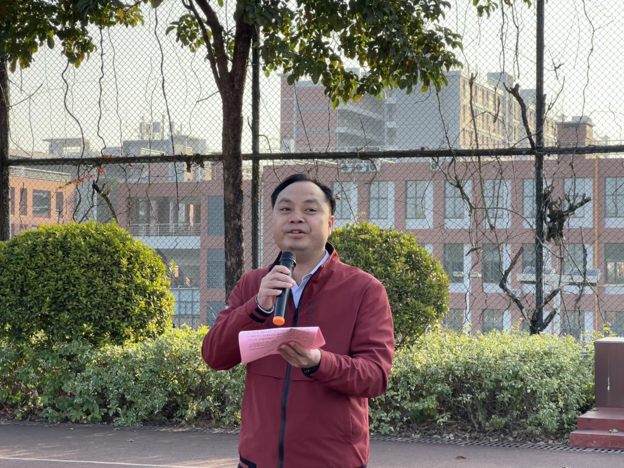 随后,学校党委副书记揭英荣进行国旗下讲话。他首先向师生致以新年祝福,并回顾了2024年学校全面贯彻党的二十大和党的二十届三中全会精神,落实“十四五”规划,取得的诸多教育成果;展望2025年,他希望全体师生以乐观、进取的态度拥抱变革。揭英荣强调,新时代更需要为学生们在专业学习和实践训练中搭建通往科技前沿、产业一线的桥梁,他鼓励同学们要在科技腾飞时代抓住机会,扎实专业基础,勇于创新,精益求精,向着卓越人才的目标奋勇前行。