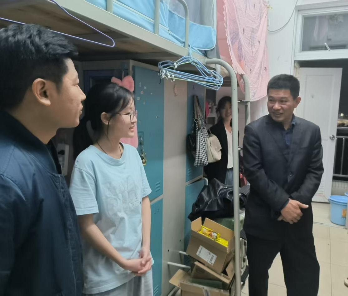 调研过程中,唐毓秋副校长步入学生宿舍与同学们展开近距离的面对面沟通交流。他以十足的耐心,倾听同学们对于住宿条件的切实感受、学习进展及“广州美博会”实训的实时情况、遭遇的学习生活难题、“校园阳光跑” 活动的开展情况等。学校领导热情鼓励同学们珍视大学这段宝贵时光,以充沛的精力和积极的心态,勇敢迎接新学期的学习与生活挑战。不仅如此,领导们还督促同学们强化思想政治修养,踊跃投身校园各类活动,全方位提升自身综合素养 。
