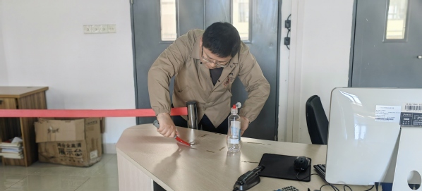 活动分为两组同步推进。第一组由实训中心党支部党员带队,重点开展“实训室颜值提升”与安全隐患排查工作。师生们重点对墙面上已损坏的、模糊不清的宣传海报、门窗封条等残留痕迹进行彻底清理,同时对实训室插座使用规范、杂物堆放、灭火器状态、安全警示标语等进行细致检查,发现并整改安全隐余处,切实保障实训安全。