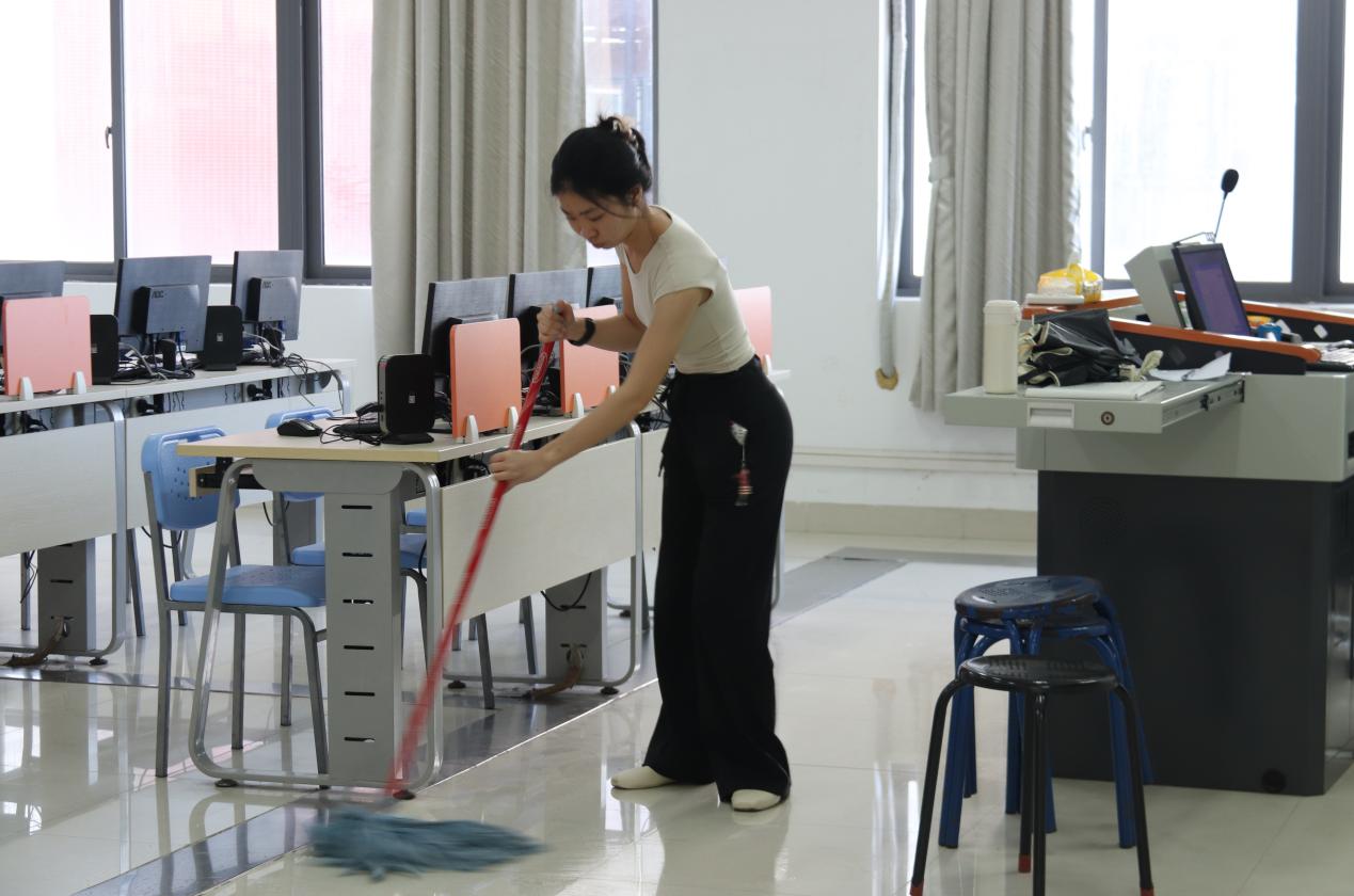 入党积极分子培训班的学员们将学习的理论落实到实际行动中,通过实际行动践行“全心全意为人民服务”的根本宗旨,为师生创造更加整洁、舒适的学习和生活环境。活动开始前,党支部成员对学员们进行了简短的培训,强调了清洁工作的重点和注意事项。在党支部成员的组织下,学员们分成多个小组,分别负责行知楼不同楼层教室的卫生清洁工作。在整个实践活动中,培训班学员们充分展现了积极的工作态度及团队合作精神。
