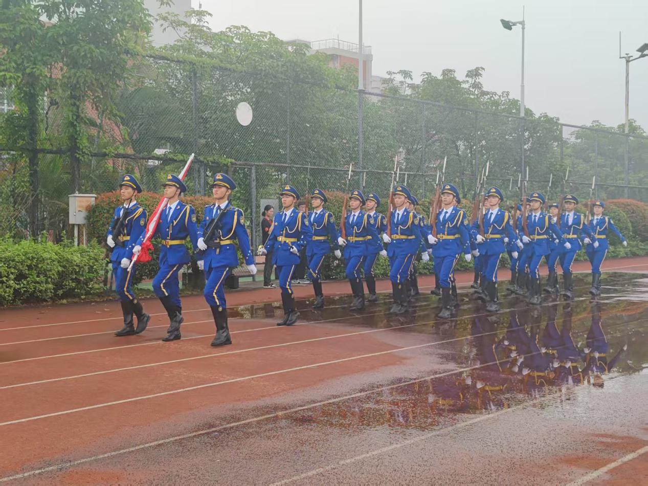 国旗护卫队迈着整齐的正步护送国旗入场,旗角在晨风中飘扬,当嘹亮的国歌响起,五星红旗在晨光中舒展,缓缓上升。全体师生肃穆而立,全神贯注,对国旗行注目礼,心中激荡着对祖国的崇敬与热爱。