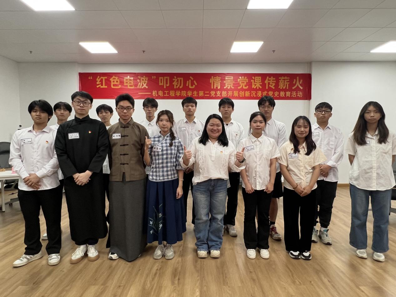 为大力弘扬“五四”精神,厚植爱国主义情怀,赓续红色血脉,创新党史学习教育形式,2025年5月8日,机电工程学院学生第二党支部于致知楼1A05开展“红色电波叩初心 情景党课传薪火——《清澈的爱 只为中国》红色主题沉浸式党史学习教育”。通过角色扮演、推理互动等年轻化方式,进一步激发了青年党员的理想信念与时代担当,让红色教育焕发时代活力。