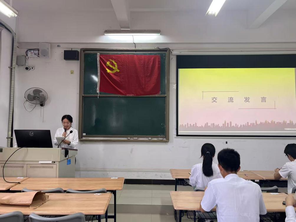 经过讨论交流,第一小组代表廖嘉欣上台发言:我们深刻认识到理想信念是共产党人精神上的“钙”,坚定理想信念、端正入党动机是每一位党员的终身课题。要深学细悟党的创新理论;要严格遵守党的纪律规矩;要全心全意为群众服务,以实际行动向党组织靠拢。