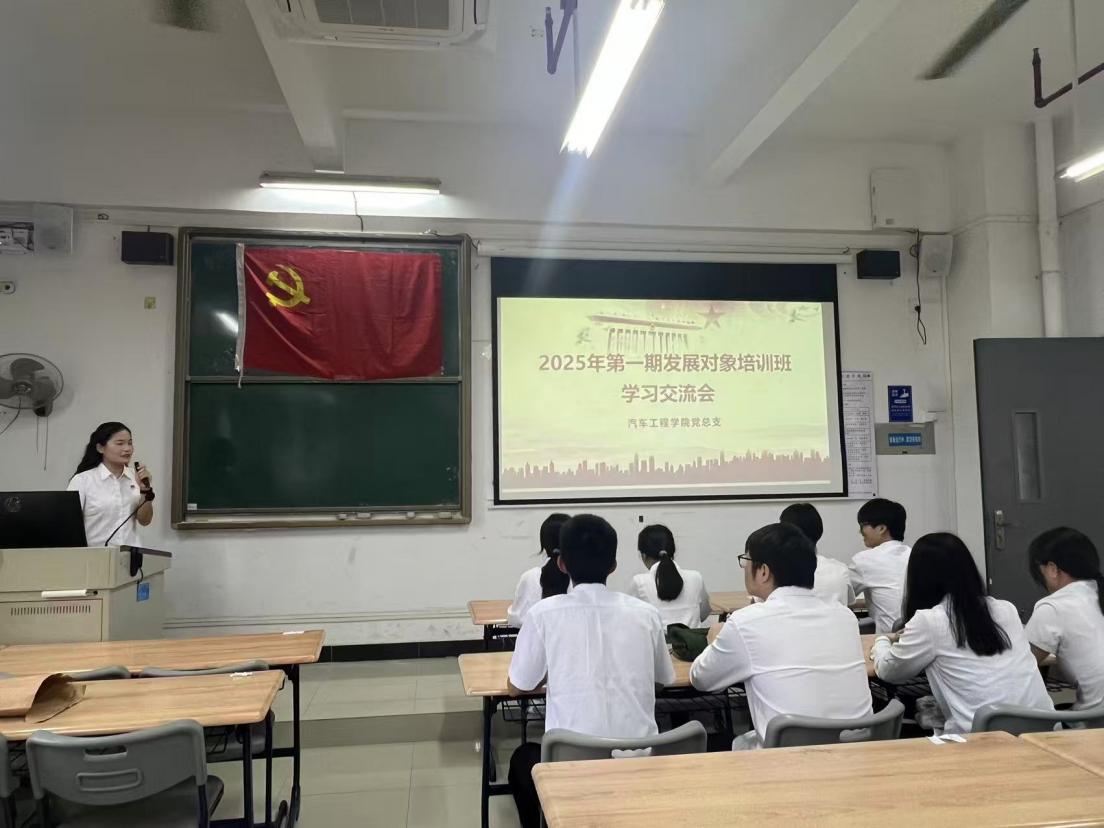 汽车工程学院党总支于2025年5月29日下午在明德楼1区312教室开展2025年第一期发展对象培训班学习交流会,汽车工程学院专职组织员、学生第二党支部书记刘彩云出席此次会议,会议由陈碧娴同志主持。