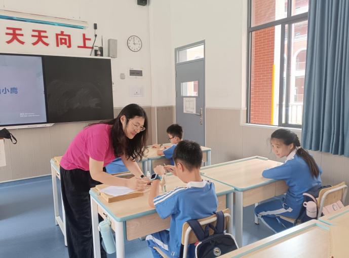 学生触摸小廌小神兽 师生互动游戏环节