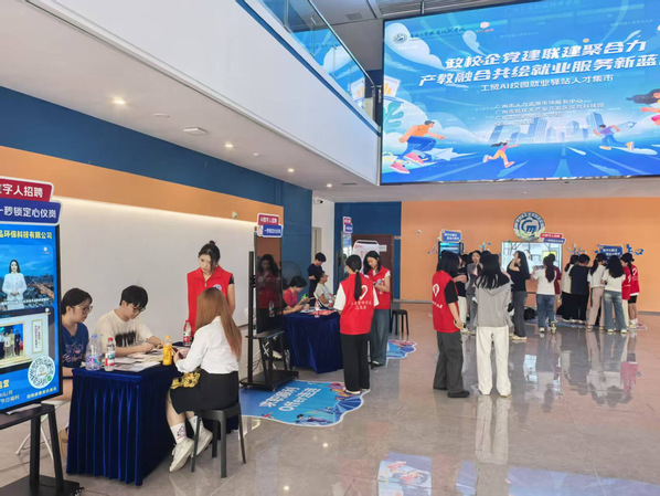 随后,在工商学院党总支书记周清莲的带领下,参加活动的领导及嘉宾前往学校学生活动中心观摩人才集市活动。人才集市由红海人力集团黄埔公司牵线,广东丽的通讯设备有限公司、爱索尔(广州)包装有限公司等15家单位通过线上线下参加,提供了新媒体运营、商务助理等一批优质岗位。其间,大家在AI就业一体机前久久驻足,体验AI面试、简历诊断等功能,对数智就业平台给予高度评价。前来应聘的同学也被AI面试数字人所吸引,纷纷前来体验及打卡。
