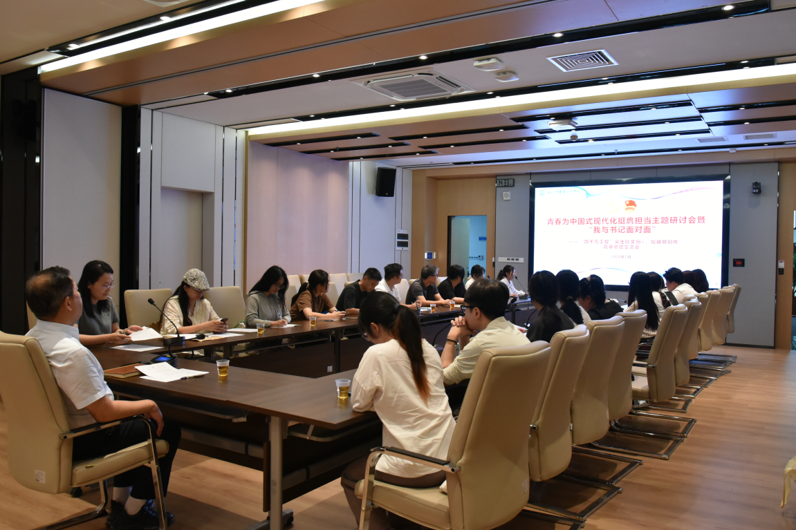 7月4日下午,我校在博学楼第三会议室举行“青春为中国式现代化挺膺担当”主题研讨会暨“我与书记面对面”——“百千万工程”突击队文创+、短视频创作竞赛总结交流会。学校党委书记何汉武、团委工作人员及各获奖团队师生代表出席会议,会议由团委书记林虹静主持。