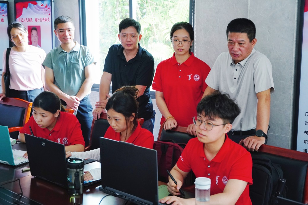 在龙门县工业园区,唐毓秋详细了解了经济贸易学院“同心燃梦队”利用电商直播技术开展助农销售的进展情况,鼓励队员们精准对接当地需求,积极拓宽特色产品销路。