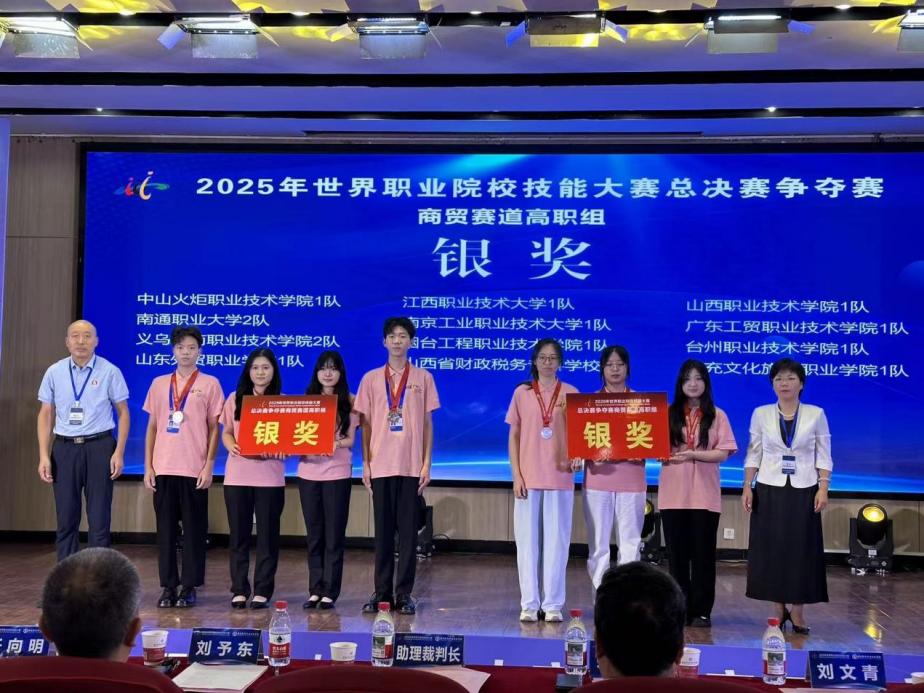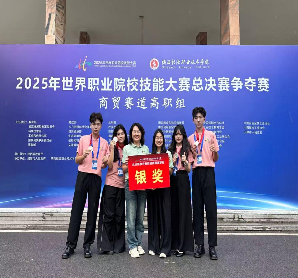 8月27日至28日,2025年世界职业院校技能大赛总决赛争夺赛商贸赛道(高职组)在陕西财经职业技术学院、陕西工业职业技术学院和陕西能源职业技术学院隆重举行。由我校经济贸易学院陈樾兒、陈嘉豪、余文娟、冯浩轩四位同学组成的参赛团队,在廖文芳、杨海娜老师的指导下,凭借出色表现斩获银奖。