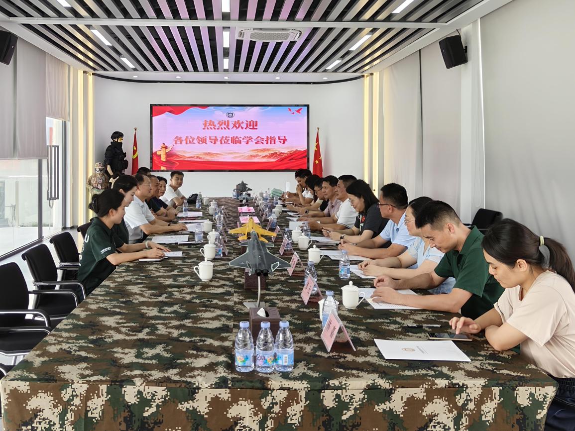 调研团队在学会副会长兼秘书长王光军等人的陪同下,首先参观了园区的各类国防教育展示内容,包括模拟射击、武器装备模型和互动式体验项目等实践教学设施。随后,双方围绕国防教育的创新与实践进行了座谈交流。