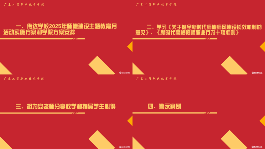 接着,全体教师共同深入学习了《关于健全新时代师德师风建设长效机制的意见》与《新时代高校教师职业行为十项准则》两大重要文件。学习过程中,学院负责人结合文件中的核心要点,围绕“如何构建长效师德建设机制”“怎样规范教师职业行为”等关键问题进行领学,着重强调要将师德师风要求全面贯穿教师招聘、培养、考核、奖惩的全过程,引导教师牢固树立“以人为本”的教育理念,严格遵守学术规范与职业底线。教师们全程认真聆听、细致记录要点,并围绕文件内容展开初步交流,大家纷纷表示,将以文件要求为行动指引,在日常教学与科研工作中不断提升自身师德修养与育人能力。