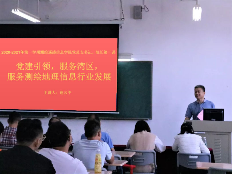 2020年11月6日上午,测绘遥感信息学院党总支书记、院长速云中以《党建引领,服务湾区,服务测绘地理信息行业》为题于白云校区明德楼2区402为19、20级全成现代学徒制工程测量技术专业学生讲授了书记、院长第一课。