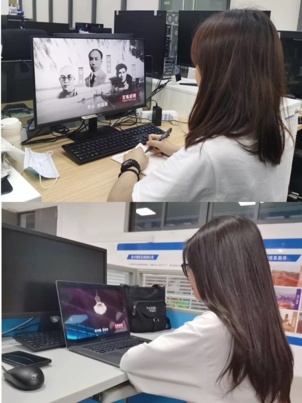 观看纪录片后,支部书记冯臻佳引导学生党员们讨论了“建党日期”与“建党节”两个时间不统一的原因。由于年长岁久和记录资料不足,1938年在延安的毛泽东、董必武等人只能回忆起一大是7月份召开的,但确切的日期记不清了,最终商量将7月1日作为党的诞生纪念日。也正是这一年,毛泽东在《论持久战》中指出:“今年七月一日,是中国共产党建立的十七周年纪念日。”而经过反复考据和论证,专家们最终确定中共一大是在7月23日召开,则已经是数十年之后的事情了。窥一斑而知全豹,“建党日期”与“建党节”两个时间的不统一,恰恰从一个侧面反映了中共百年来经历过多少挫折与磨难。正是一次次濒临绝境中的淬火,一次次万险千难中的锤打,才让她最终百炼成钢。