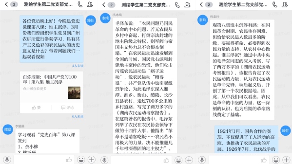 观看纪录片后,学生党员们进行了交流讨论,增进了对早期革命中农民运动的理解。