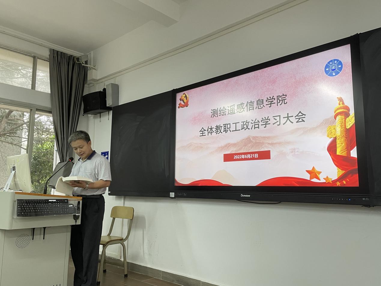 6月21日,测绘遥感信息学院在天河校区东区教学楼201召开全体教职工政治学习会议暨毕业生就业去向落实工作推进会,学院党总支书记兼院长速云中主持会议并组织政治学习,学院全体教职工参加会议。