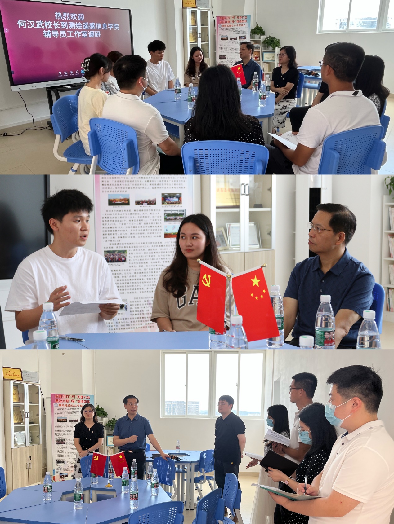 6月24日上午,学校党委副书记、校长何汉武到联系学院测绘遥感信息学院进行调研,校办主任吴浩、测绘学院副书记李元及辅导员随同调研。