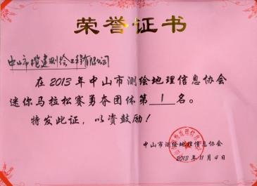 在此氛围下,员工多次获奖,为公司争得荣誉,如每年的中山市测绘科技论文奖、2013年中山市测绘地理信息协会迷你马拉松赛团体第一名、2015年中山市测绘地理信息协会跳绳大赛团体第一名、2017年中山市测绘地理信息协会定向越野赛第八名、2019年中山市测绘地理信息协会CS真人大赛一等奖、2020年度中山市测绘地理信息协会乒乓球联谊赛第二名、2021年度中山市测绘地理信息定向越野赛第一名等。