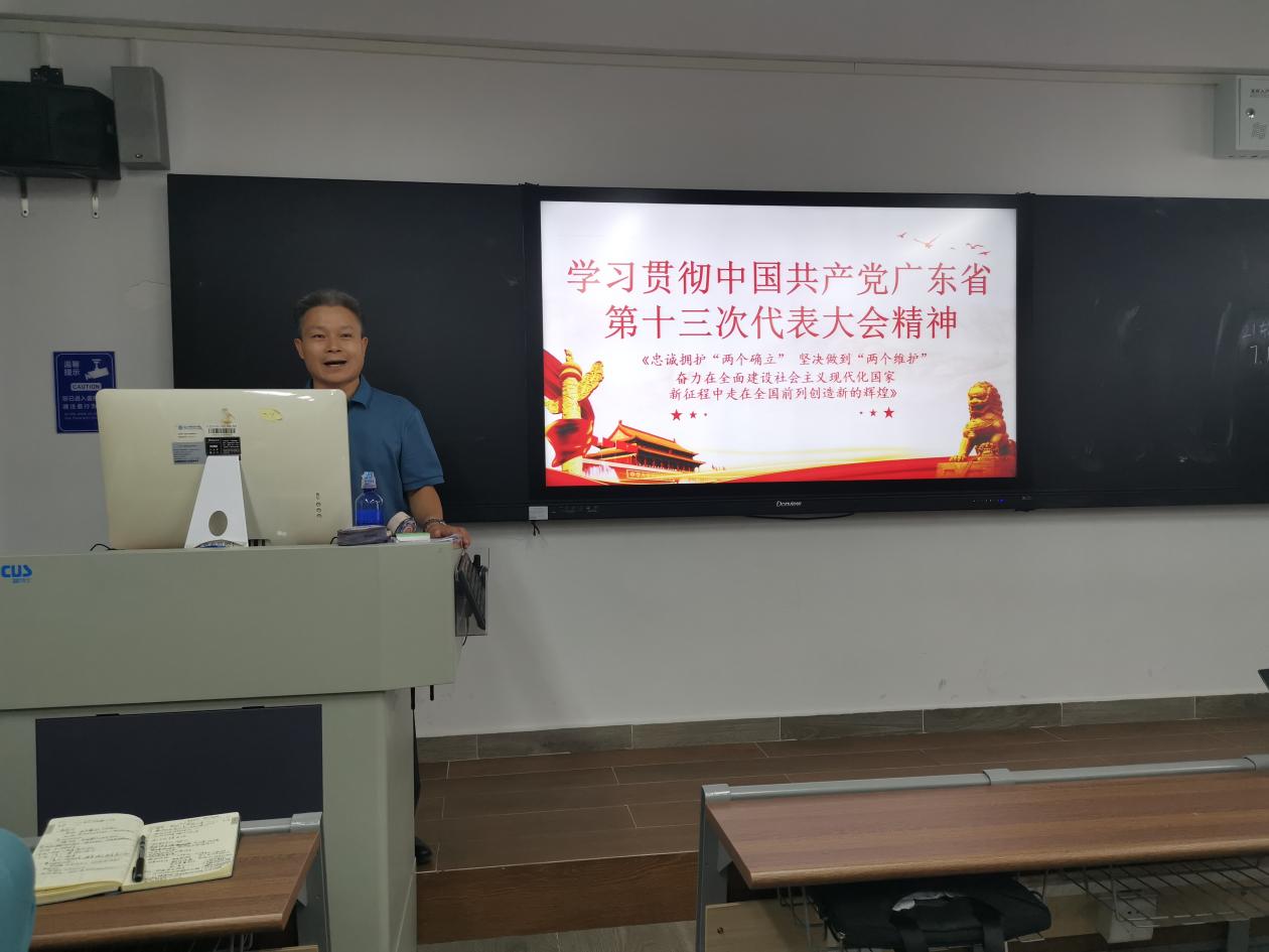 而后,速云中院长带领大家学习中国共产党广东省第十三次代表大会精神,这次大会是一次坚持以习近平新时代中国特色社会主义思想为指导,忠诚拥护“两个确立”、坚决做到“两个维护”,紧跟习近平总书记、奋进新征程的大会,是一次统一思想、凝心聚力、求真务实、风清气正的大会,对广东当前和今后一个时期的发展具有重要意义。同时省党代会报告提出,要落实立德树人根本任务,坚持‘五育’并举,促进学生全面发展。一线教育工作者要不断探索创新,提升教学质量,提高育人成效。