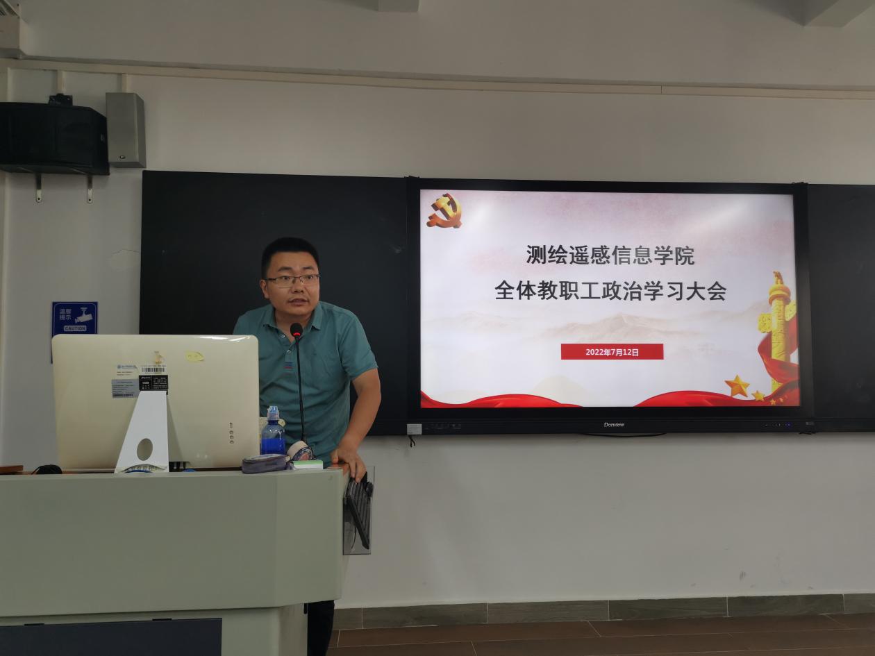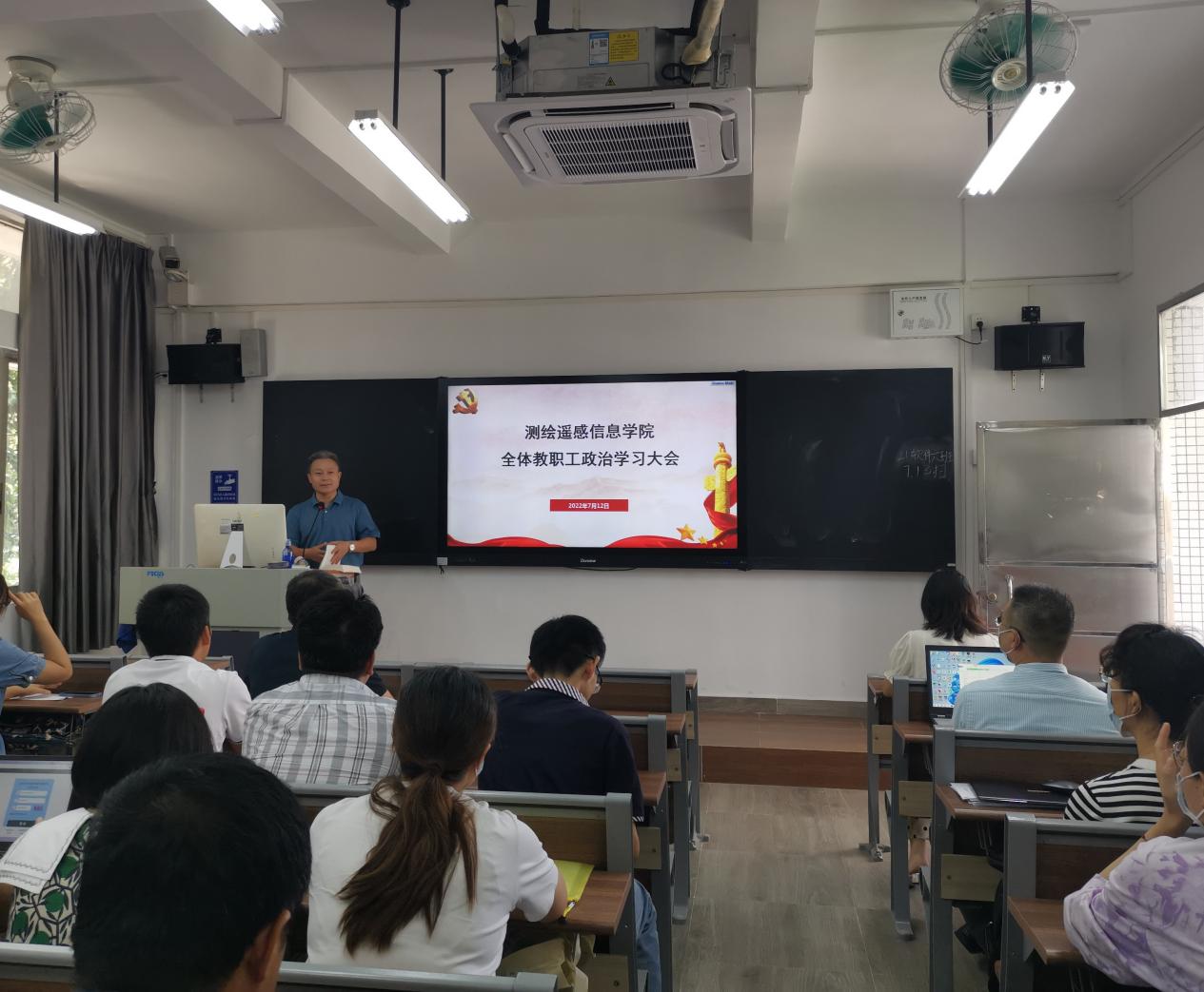 为认真学习贯彻习近平新时代中国特色社会主义思想,深入贯彻落实习近平总书记关于教育的重要论述及党中央、国务院重大决策部署,持续推进政治理论学习常态化和规范化。7月12日,测绘遥感信息学院在天河校区东区教学楼201召开全体教职工政治学习会议,学院党总支书记兼院长速云中主持会议并组织政治学习,学院全体教职工参加会议。