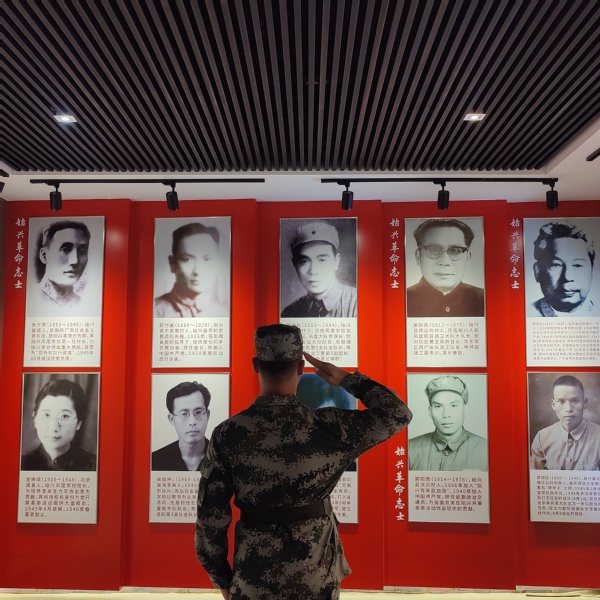 (退役军人、服务队成员张立生向革命先辈致敬)