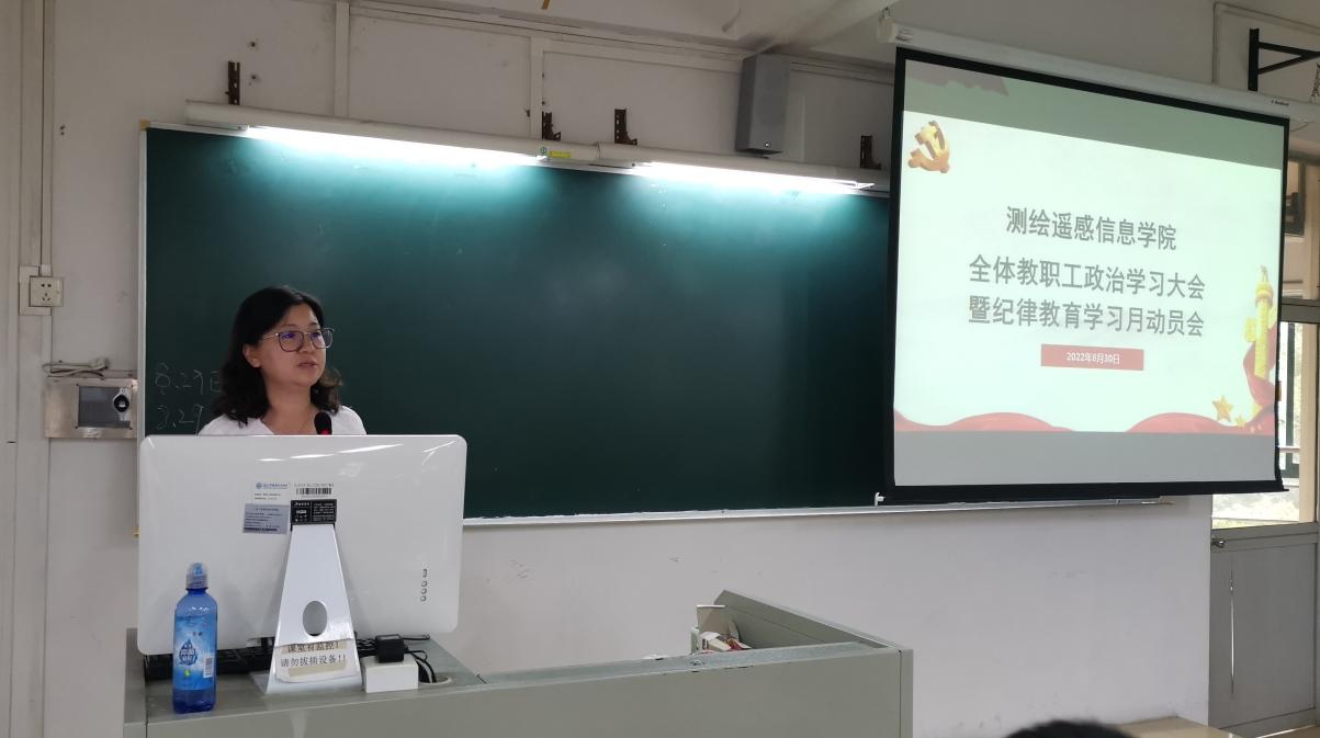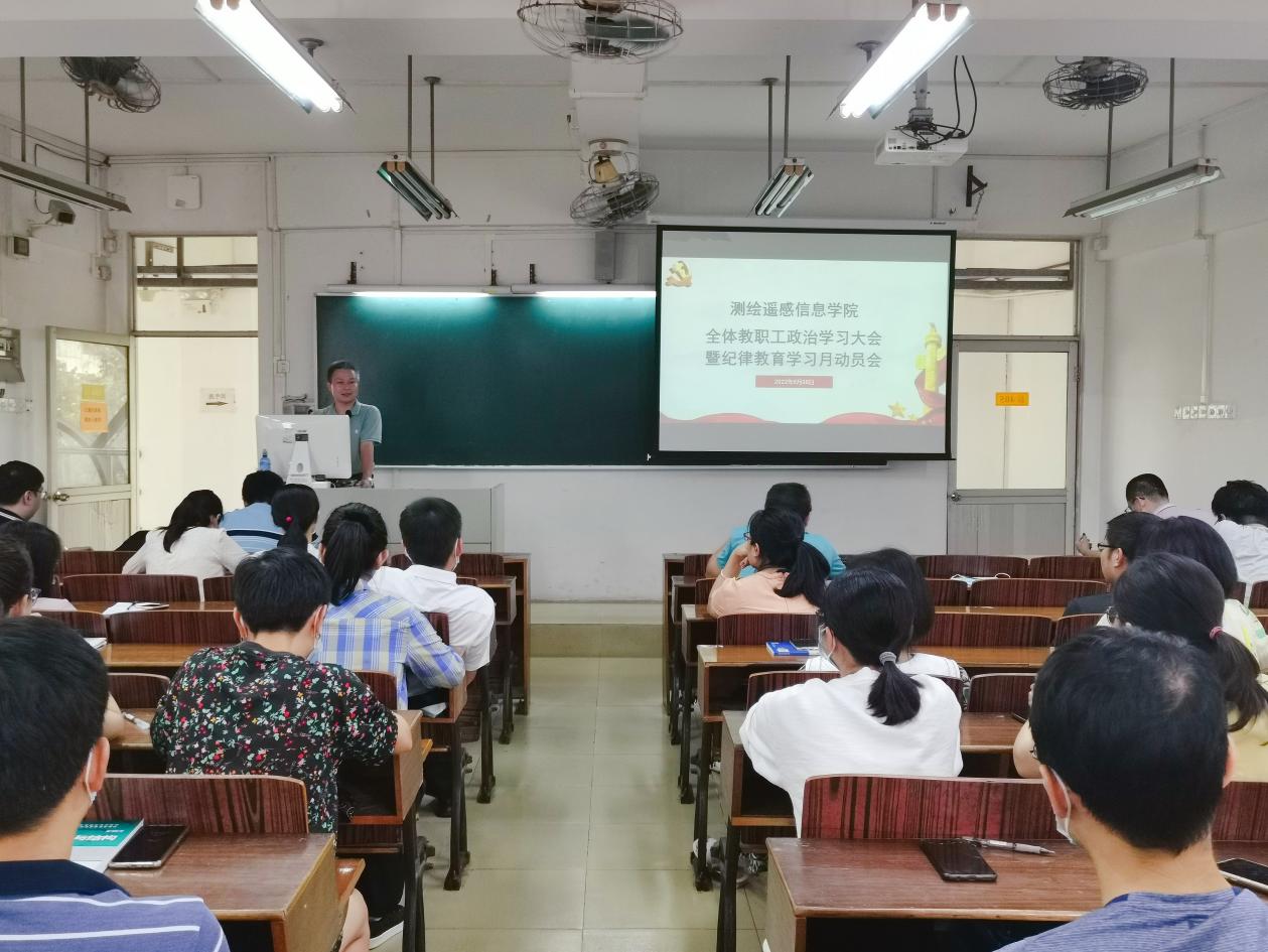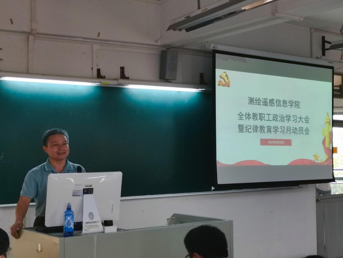 8月30日,新学期伊始,测绘遥感信息学院在天河校区西区综合楼405召开全体教职工政治学习会议暨暨纪律教育学习月动员会,学院党总支书记兼院长速云中主持会议并组织政治学习,学院全体教职工参加会议。