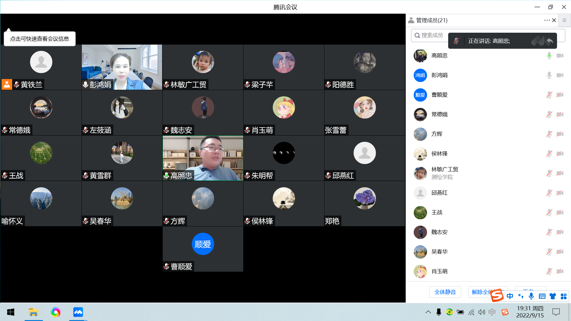 2022年9月15日晚上,测绘遥感信息学院邀请南方医科大学公共卫生学院副院长、广东省教学名师、国家一流在线开放课程及国家精品资源共享课主持人彭鸿娟教授,通过腾讯会议在线举办《基于MOOC平台的精品开放课程建设与混合式教学改革》专家讲座。本次讲座由测绘学院副院长高照忠主持,测绘学院全体专任教师及相关教辅人员、学校其他二级学院的部分老师聆听了讲座。