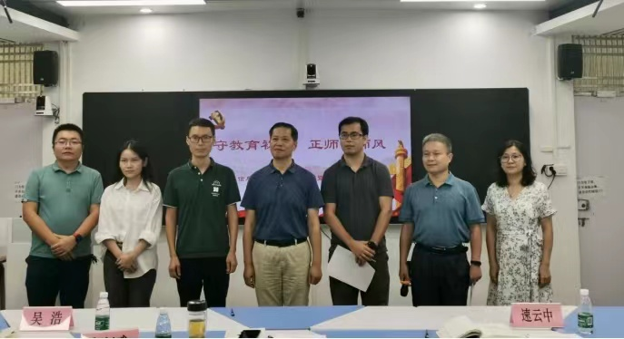 为深入学习《习近平谈治国理政》第四卷,严格纪律教育学习和师德师风建设要求,全面推进“双高计划”专业群建设工作,以实干实绩迎接党的二十大召开,9月27日,测绘遥感信息学院在天河校区西区综合楼205召开以“守教育初心,正师德师风”为主题的全体教职工纪律教育学习暨师德师风教育会议。会议由测绘遥感信息学院党总支书记兼院长速云中主持,学校党委副书记、校长何汉武出席会议并发表重要讲话,学校办公室主任吴浩、学院党总支副书记李元、副院长高照忠以及学院全体教师参加会议。