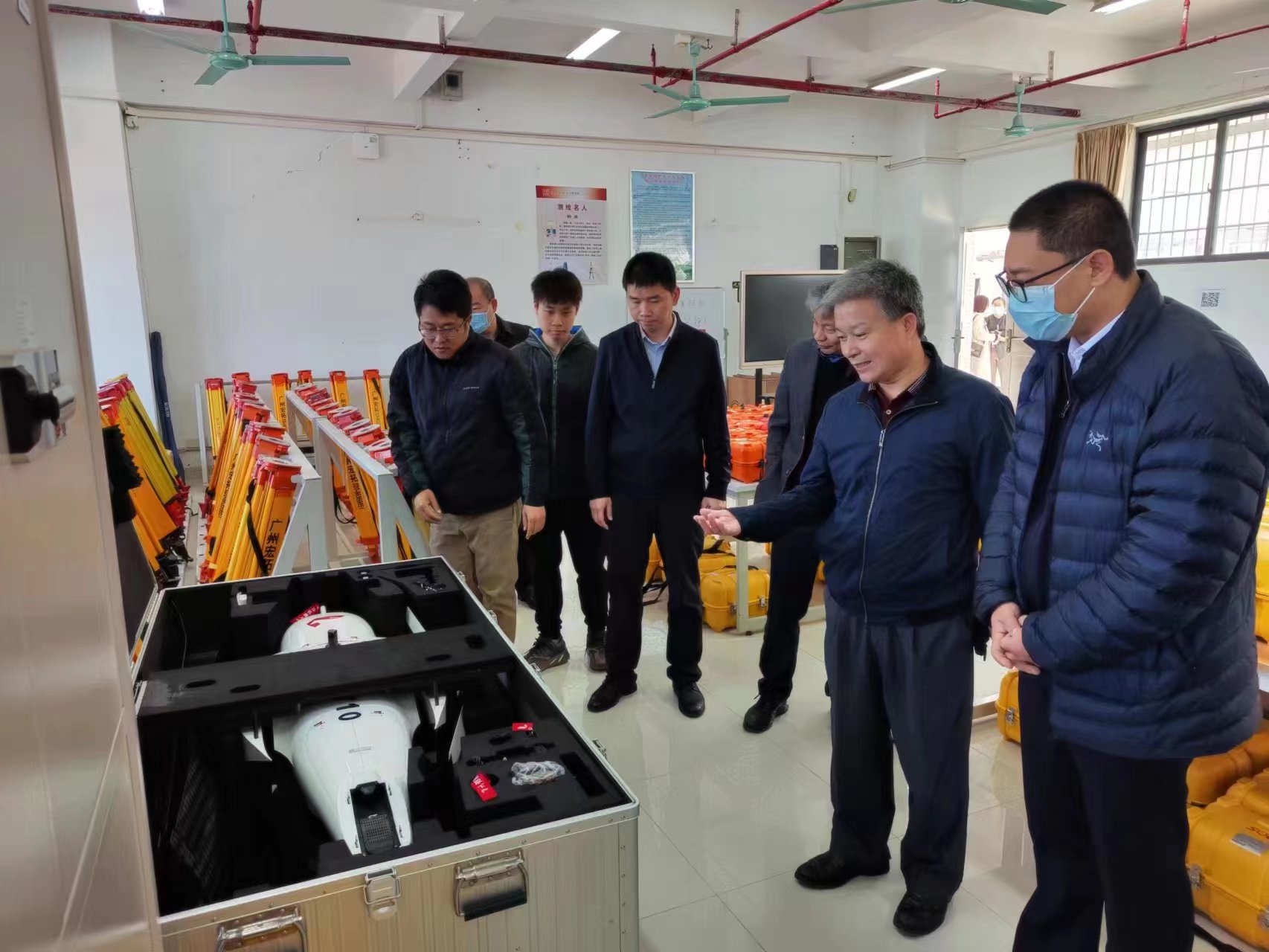 首先,速云中对本次到访的专家和嘉宾表示热烈的欢迎,随后带领胡晓光等人参观测绘地理信息实训中心,对本次竞赛的场地和竞赛设备进行了全面的讲解。